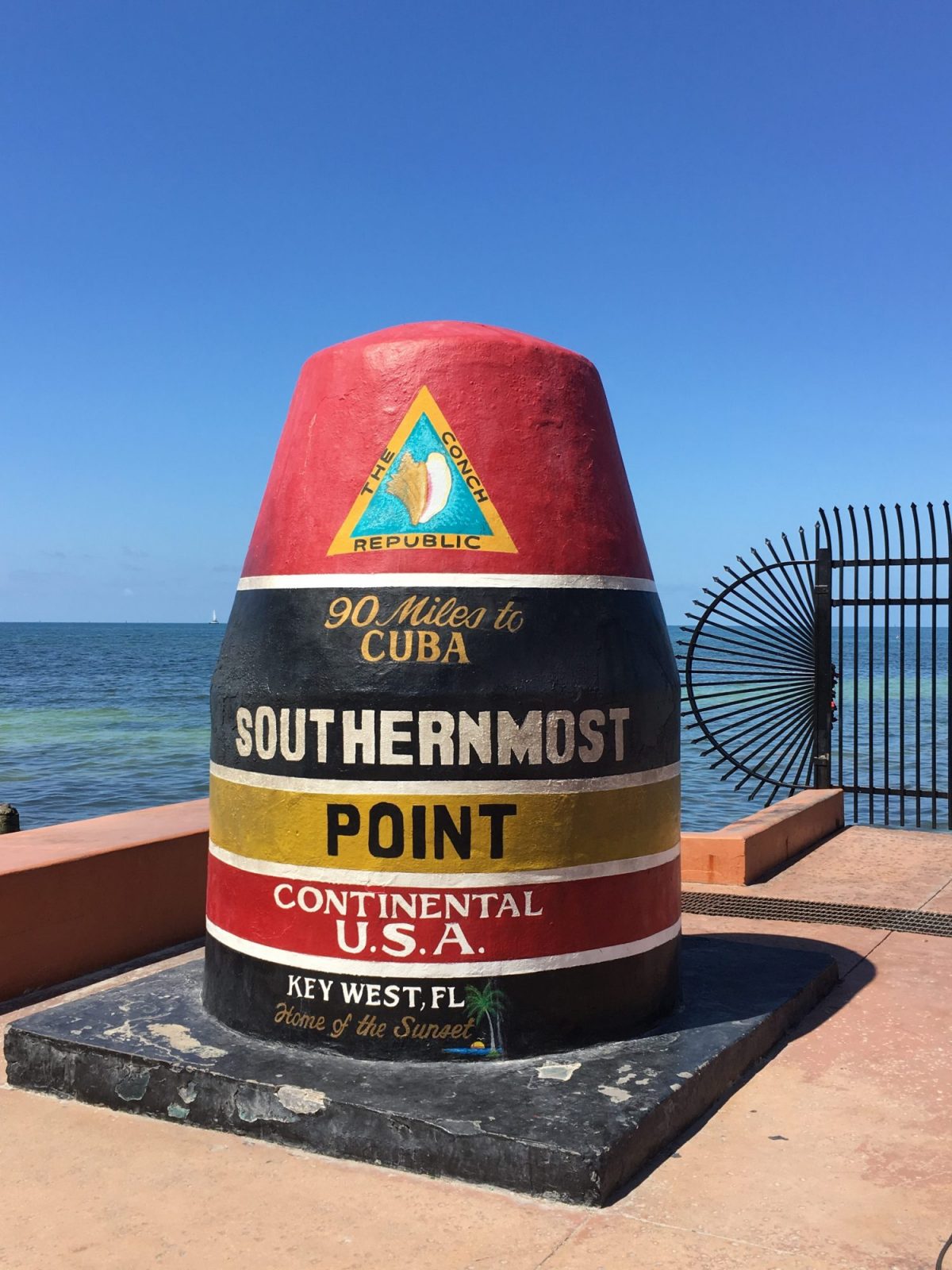 - La borne la plus au sud des USA. Elle indique Cuba à 90 km ou 120 miles. ©Judith Lossmann