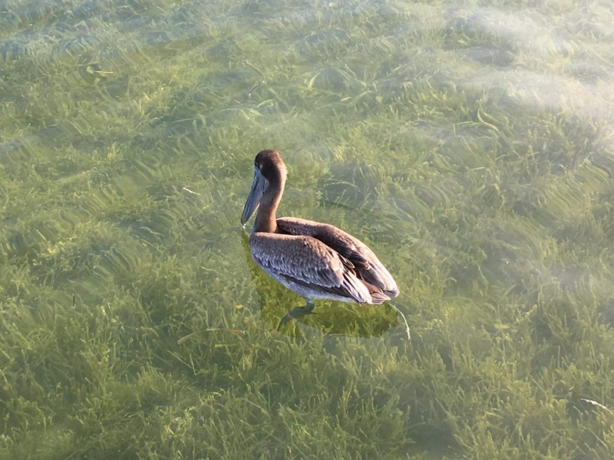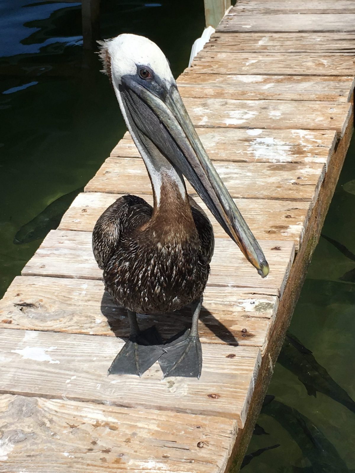 - Un Pélican attend que la viande destinée aux Tarpons tombe dans son bec. ©Judith Lossmann
